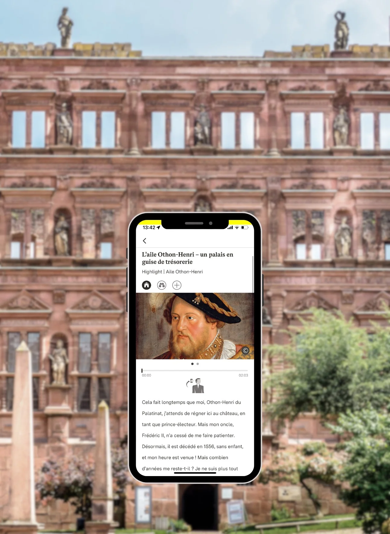 Château de Heidelberg, application Monument BW, exemple d’une étape Highlight